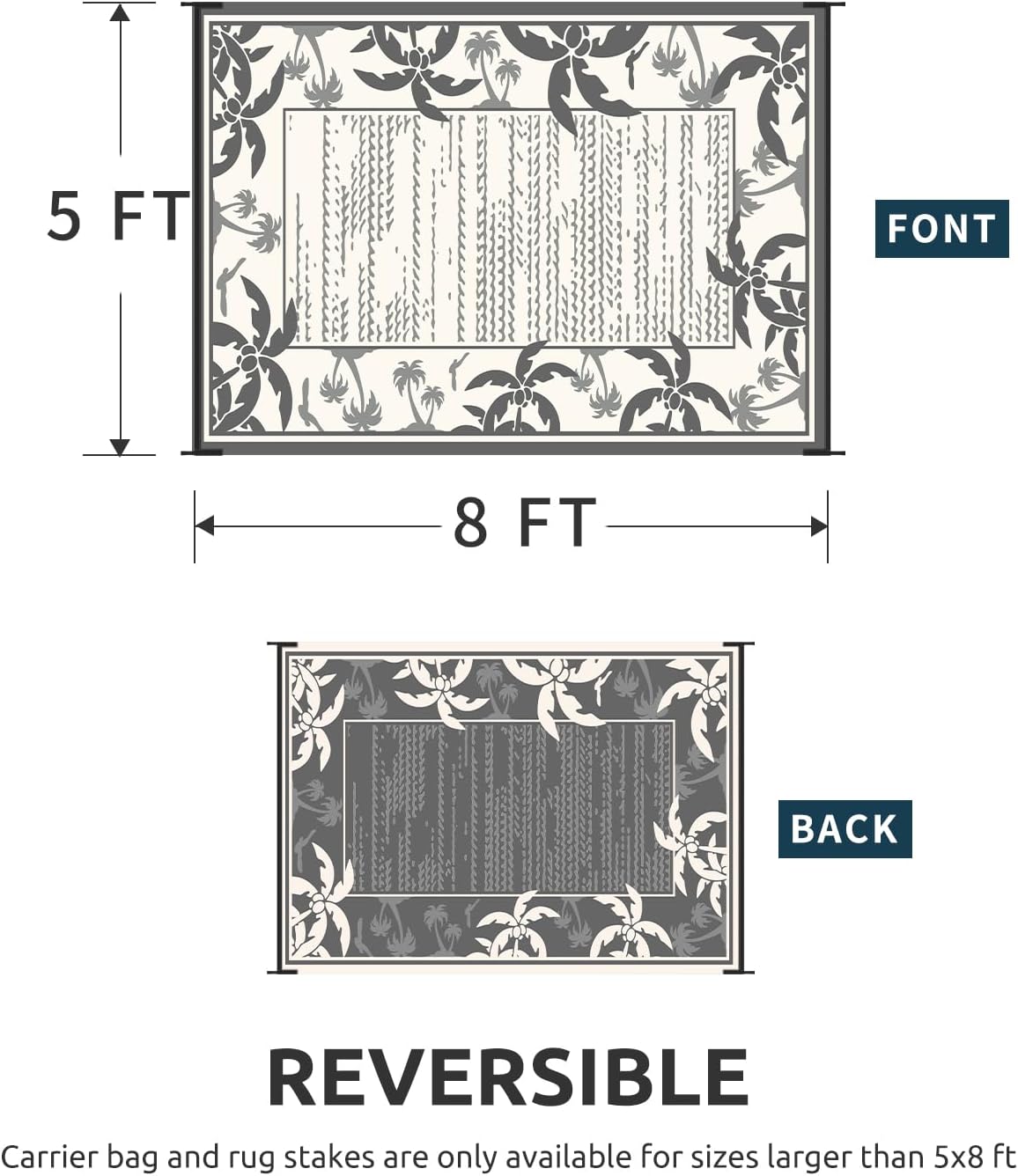 COCOER Outdoor-Rug 5×8 ft Waterproof Reversible Outdoor Plastic Straw Rug RV Indoor Outdoor Carpet Quick Dry Patio Rug Camping Mat for Balcony Backyard Picnic Beach-Grey&Beige
